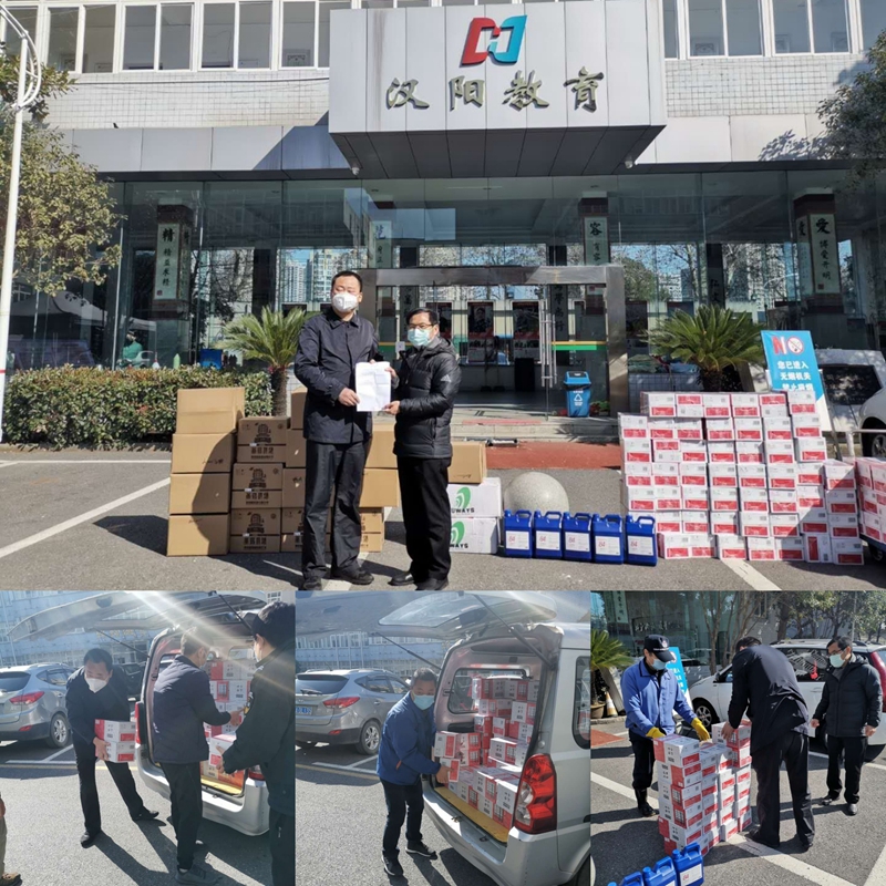 2月18日,黃鶴樓酒業有限公司黨委書記、董事長許鵬前往漢陽區教育局開展疫情慰問,并送去10萬余元的口罩、消毒液、防護服等防疫物資,區教育局黨委副書記、局長劉平華代表區教育局接受捐贈,黃鶴樓酒業黨委委員、總經理助理魏國陪同慰問。