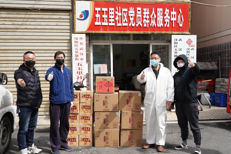 3月11日,黃鶴樓酒業總經理助理、銷售公司常務副總經理王超代表公司前往五玉里社區、居然之家物業、碧水晴天小區、新奧藍草坪小區、錦繡長江小區,漢陽熙苑小區開展抗疫慰問,并捐贈8萬余元防疫物資。