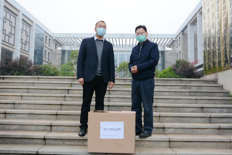 4月20日,咸寧市科學技術協會黨組書記朱必平一行慰問黃鶴樓酒業咸寧分廠,咸寧分廠廠長李良代表公司接受捐贈物資。