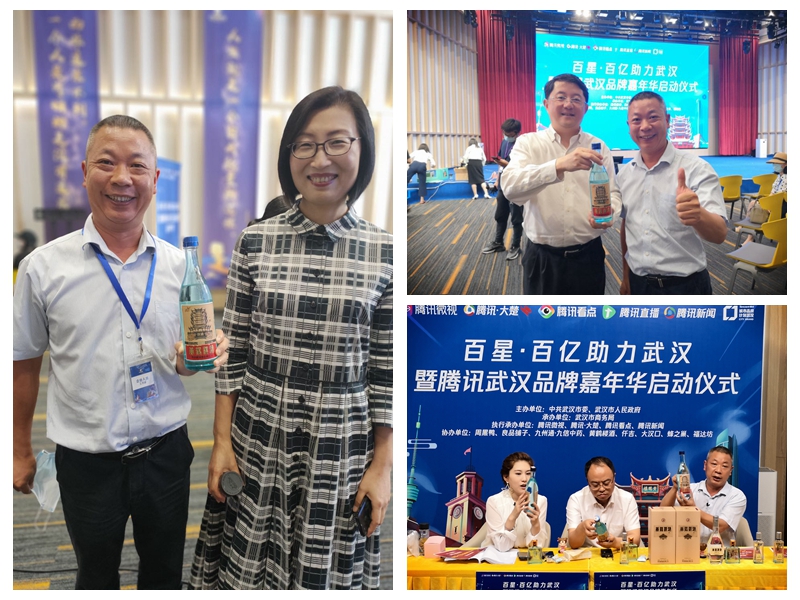 5月26日,“百星·百億助力武漢——騰訊武漢品牌嘉年華”直播活動在武漢舉行,武漢市人民政府副秘書長方潔,武漢市商務局局長韓民春,武漢市商務局副局長張文波、翟玉峰做客直播間,為黃鶴樓酒、周黑鴨、良品鋪子等武漢名優特產帶貨。黃鶴樓酒業黨委委員、總經理助理魏國代表公司參加活動。