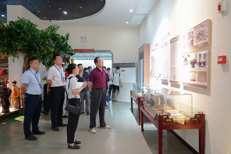 周云平一行調研了黃鶴樓酒文化博覽園游客中心、天成坊釀造車間、名人酒窖、酒文化博物館和黨建文化館,了解了黃鶴樓酒的文化源流、釀造工藝及產品結構。在名人酒窖,許鵬介紹了橡木桶酒在儲存工藝上的獨特創意及其不同于普通白酒的口感品質,并邀請周云平品鑒了黃鶴樓橡木桶酒,周云平不吝稱贊道“好酒”。