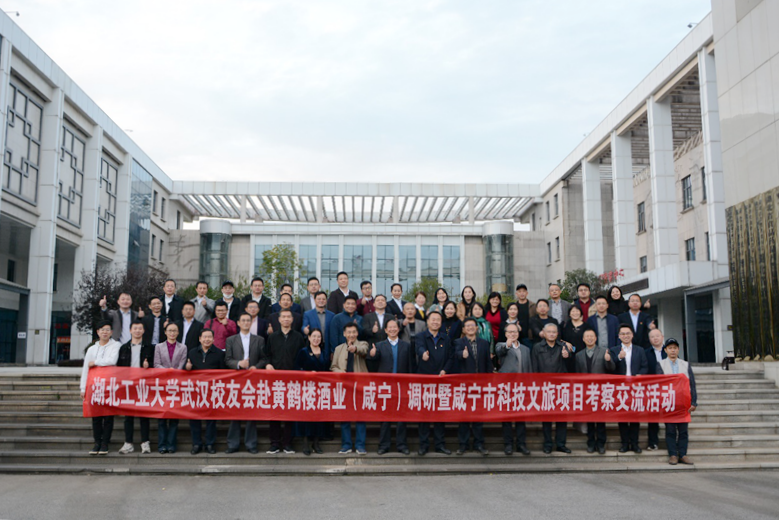10月24日,湖北工業大學武漢校友會赴黃鶴樓酒業(咸寧)有限公司調研暨咸寧市科技文旅項目考察交流活動在黃鶴樓森林美酒小鎮順利舉行,湖北省農業農村廳原副巡視員李慶仁,湖北工業大學原黨委書記朱正亮,湖北工業大學校友會副理事長、武漢校友會會長楊新才等數十位湖北工業大學校友會成員參加活動,咸寧市政府辦黨組成員、市政府副秘書長鄢文軍,湖北工業大學黨委副書記蔡光興,湖北省人民政府咨詢委員、湖北工業大學教授王宇波,市招商和投資促進局黨組成員、副局長祝軍,高新區招商局局長王琳瑕出席活動。黃鶴樓酒業黨委書記、董事長許鵬,黨委副書記、副總經理麻玉俠出席活動。