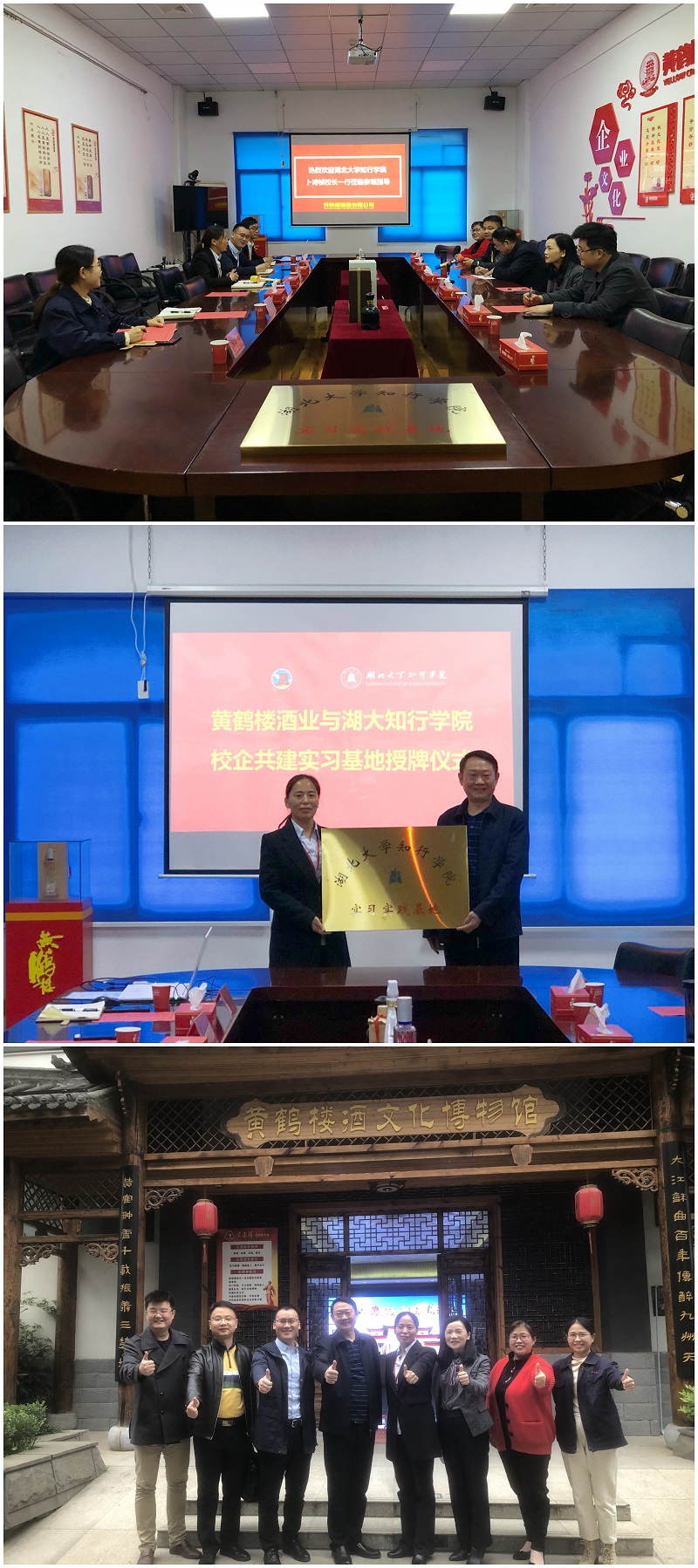 11月5日,湖北大學知行學院校長卜詩楨,黨委委員、副校長鐘春敏、陳剛一行到黃鶴樓酒業參觀交流,黃鶴樓酒業黨委副書記、副總經理麻玉俠接待來訪。