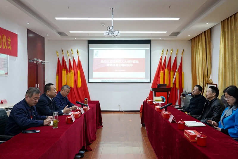 2月20日,漢陽區人大常委會副主任陶維明,區人大常委會委員王成明,區人大常委會財經委主任周本秀一行調研黃鶴樓酒業,黃鶴樓酒業黨委書記、董事長許鵬,黨委委員、總經理助理魏國陪同調研。