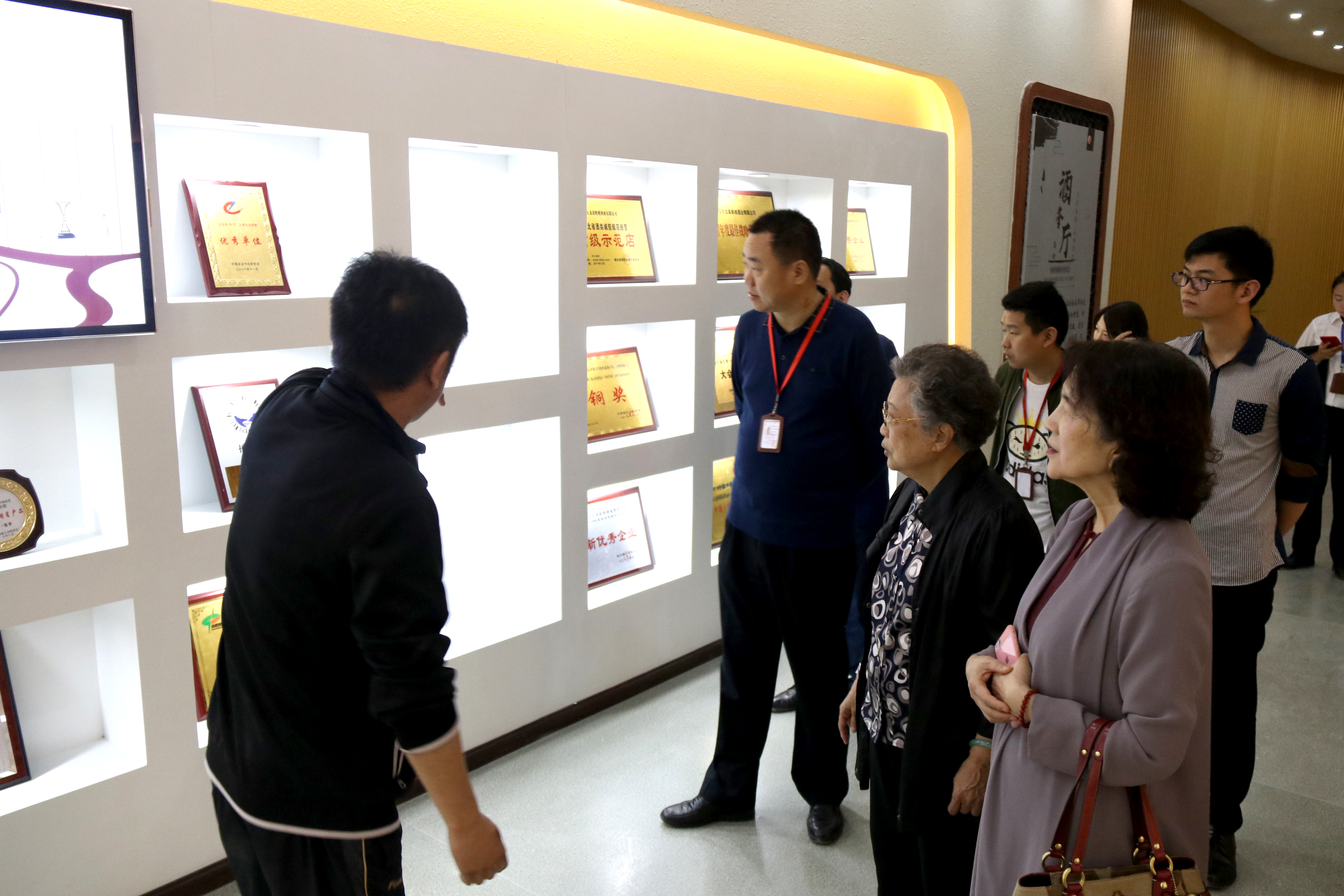 4月18日,原武漢市總工會主席何漢香,武漢市女企業家協會會長戴竹筠,武漢市女企業家協會辦公室主任周艷參觀調研黃鶴樓酒業,公司黨委書記、董事長許鵬,總經理助理、行政服務中心總監魏國接待參觀。