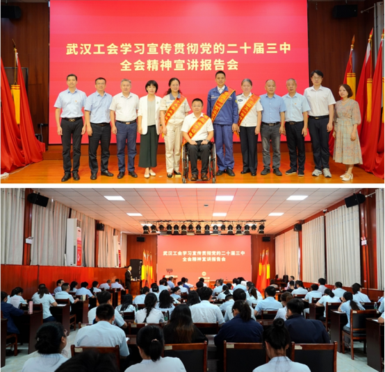 9月14日,武漢工會學習宣傳貫徹黨的二十屆三中全會精神宣講報告會在黃鶴樓酒業舉行,武漢市總工會黨組成員、副主席李律,市總工會宣教部部長曹晶,漢陽區人大常委會副主任、區總工會主席周立強,區總工會黨組書記、常務副主席李鐘,副主席謝國珍出席會議,武漢市勞模工匠宣講團成員胡文兵、王群、胡驚雷、尹利受邀講課,黃鶴樓酒業監事長黃曉文,黨委委員、副總經理王超,黨委委員、副總經理、工會主席魏國參加會議。