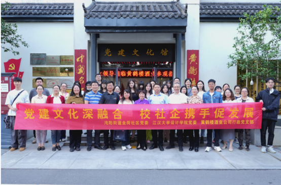 10月16日,江漢大學設計學院聯合沌陽街道金荷社區到黃鶴樓酒業開展主題黨日活動,江漢大學設計學院黨委書記唐浪,黨委副書記、工會主席夏敏,教職工黨支部書記魏坤,金荷社區黨委副書記李滿,黃鶴樓酒業行政黨支部書記、行政服務中心總監陳朝陽參加活動。