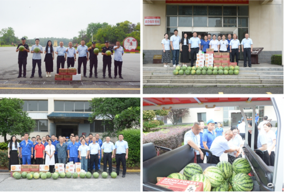謝毅一行先后前往釀造車間、包裝車間、倉儲物流等地,為一線員工送去清涼解暑的西瓜、飲料及防暑藥品等物資,并詳細詢問了高溫下員工工作情況、作息安排以及防暑措施落實情況。