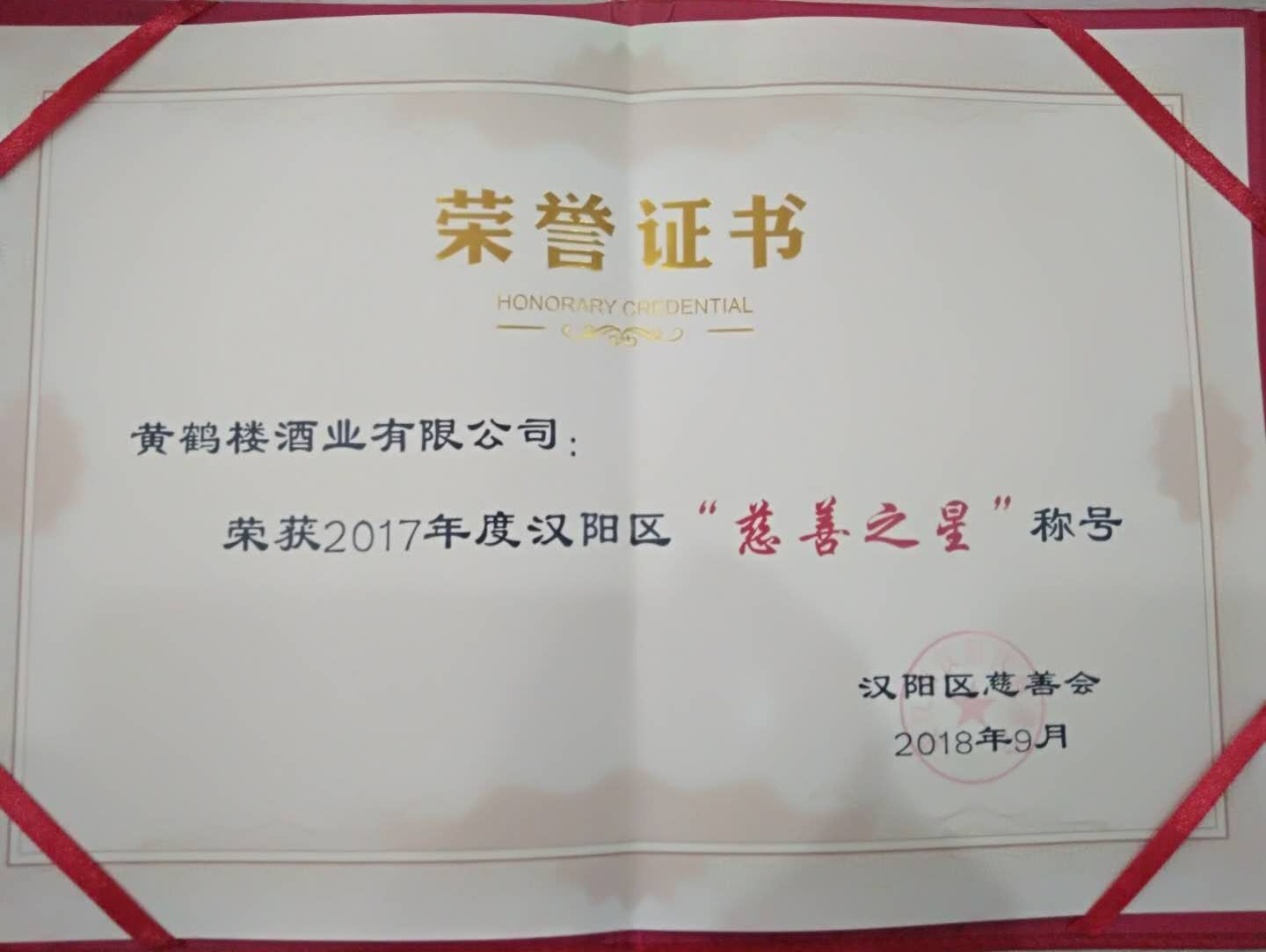 黃鶴樓酒業榮獲漢陽區慈善會2017年度“慈善之星”稱號