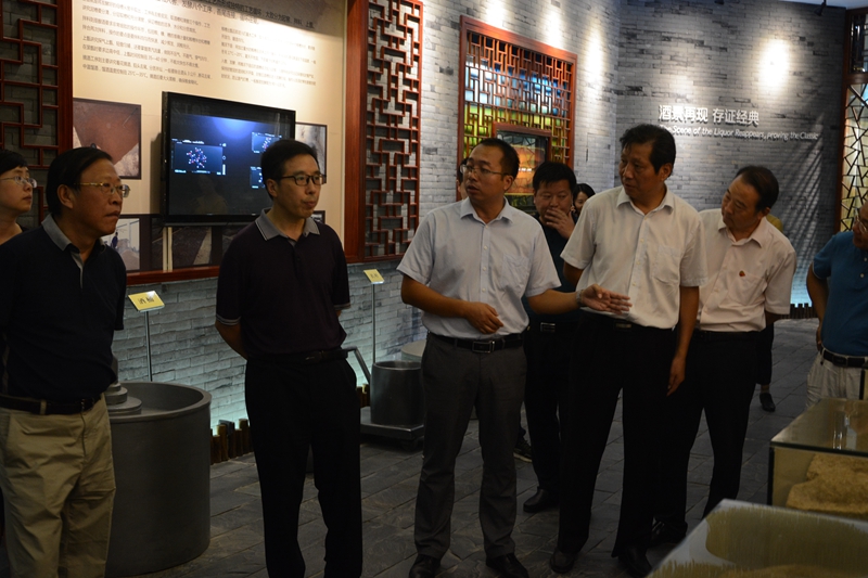 王述華一行在講解員的帶領下參觀了景區的商貿中心、黃鶴樓酒文化館、美酒銀行、酒香花果山等景點。在黃鶴樓酒文化館,李良詳細介紹了黃鶴樓酒的制曲工藝、五糧配比。