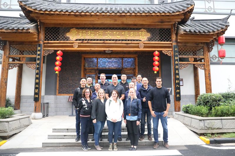 11月13日,中國食品發酵工業研究院釀酒研究部主任助理、釀酒研究中心主任李紅,百威全球采購總裁Tony Milikin,副總裁Julia Mize,釀造與質量副總裁Jane Killebrew,臨近產品副總裁Mateus Alencar,高管Kimberley Montgomery,Sarah,Graeme Hamilton,Tim Seow,及亞太區高管Masson Zhang,Hans Gao,Charlie Kuang,付兆輝等一行參觀黃鶴樓酒業,公司總經理助理魏國接待來訪。