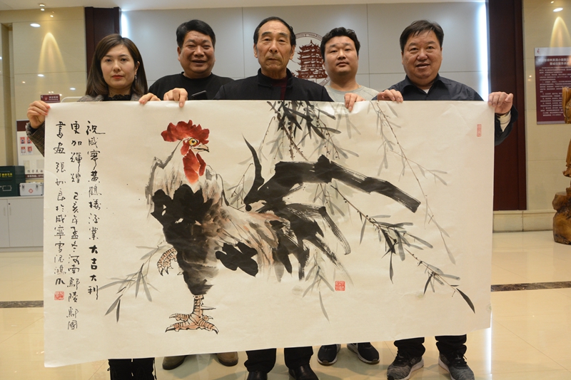 張如良一行參觀了景區的商貿中心、黃鶴樓酒文化館、美酒銀行、鶴隱居、酒香花果山等景點,在酒香花果山,張如良贊賞黃鶴樓森林美酒小鎮的風景秀麗,同時對品嘗的黃鶴樓原酒贊不絕口,隨后,現場創作一幅“大吉(雞)大利”圖贈與黃鶴樓酒業,并預祝黃鶴樓酒業銷量更上一層樓。