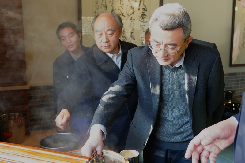 湖北省政府辦公廳秘書五處副處長祁型磊、秘書五處主任科員吳紅春,湖北省經信廳綜合處副處長劉良博、消費品工業處四級調研員陳萍、武漢市經信局消費品處處長溫蕾、四級調研員周立,黃鶴樓酒業行政服務中心總監助理陳朝陽參加調研。