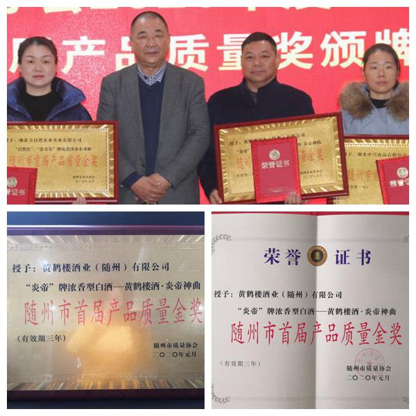 1月10日,隨州市質量協會2020年度工作會議暨隨州市首屆產品質量獎頒牌活動在隨州齊星湖會館舉行。黃鶴樓酒業“炎帝神曲酒”榮獲隨州首屆產品質量金獎,隨州分廠廠長閔波平參加活動并上臺領獎發言。